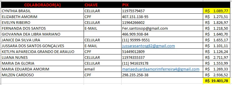 | 06/11/2025 | 06/11/2025 | PAGO | DAVID MAIKY | REEMBOLSO | | | R$ 403,25 | R$ 403,25 | R$ 403,25 | R$ 0,00 | - | - | |